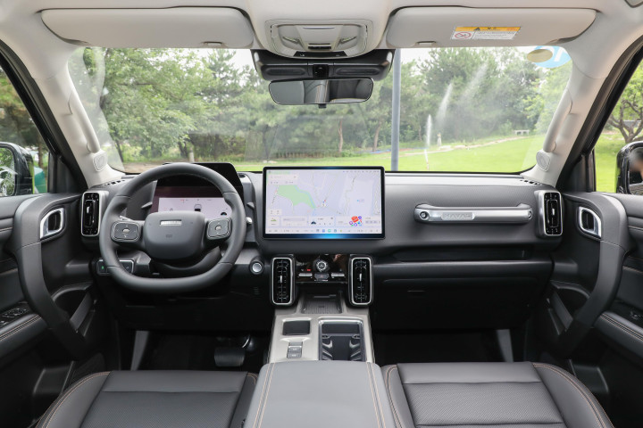 进入车内,哈弗大狗PLUS以山野会客厅为设计理念,将精致感与实用性结合,营造出温馨且舒适的驾乘氛围。内饰提供云锦米与乌木黑两种配色选择,全舱采用软质包覆,触手可及之处均有细腻的质感,前门的双层隔音玻璃还能有效隔绝外界噪音,提升了车内的静谧性。中控台布局简洁明了,怀挡式的换挡结构替代了传统的飞机挡杆,让中央岛台区域释放出更多空间,副仪表台处设计有50W手机无线充电面板、控制旋钮与储物格,兼顾了使用的便捷性与实用性,副驾驶前方的扶手设计,也延续了车型的越野属性。12.3英寸全液晶仪表盘与14.6英寸悬浮式中控屏形成的联屏效果,屏幕清晰度高,操作流畅,9英寸的W-HUD抬头显示可将重要的行车信息直接投射在前挡风玻璃上,让驾驶员无需低头,提升了行驶的安全性。